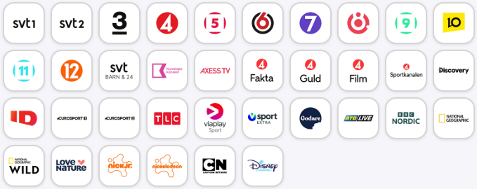 Vårt populäraste paket med 36 kanaler, Tv4 Play plus & britbox